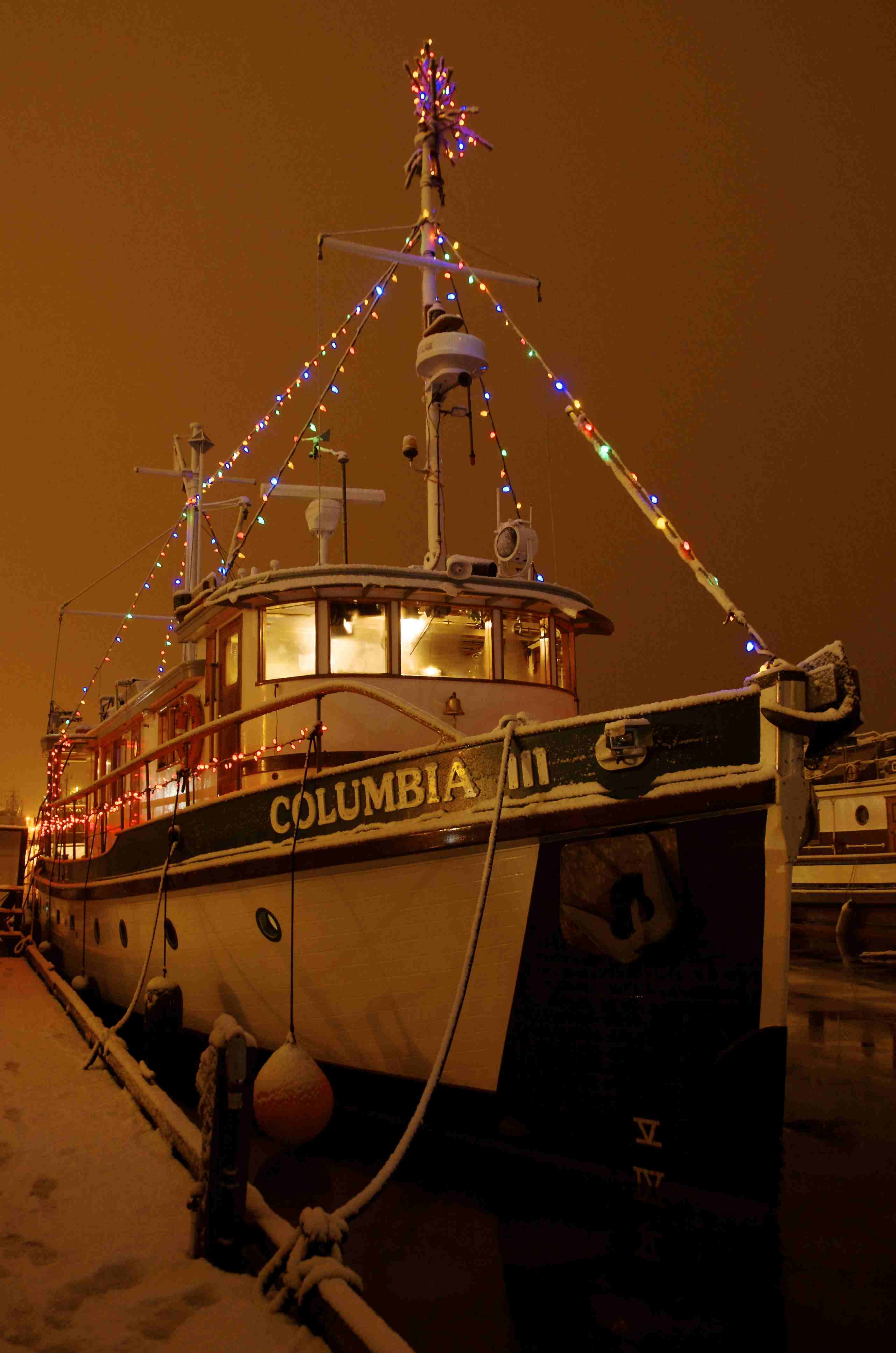 We started the winter cruises to get connected with locals who knew and loved the Columbia III from her earlier mission/hospital ship days, but now just about everyone wants to join us for our annual Christmas Cruises. We provide the tea, coffee, cookies and the vessel, you just show up and pay $10 if you have the money, and come for free if you don’t.